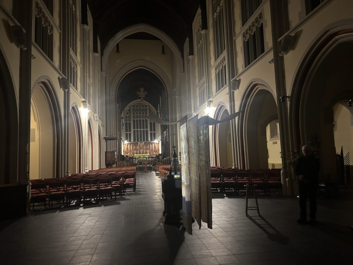 Local artist Kate Solar chose a cathedral built over a brook as the location to display her art about Freshwater Brook. (Amanda Wright/The Signal)When Kate Solar was given the choice on where to display Absent Currents, her piece about Freshwater Brook and its lasting effects on the way Halifax operates, she jumped at the chance to use All Saints Cathedral.
