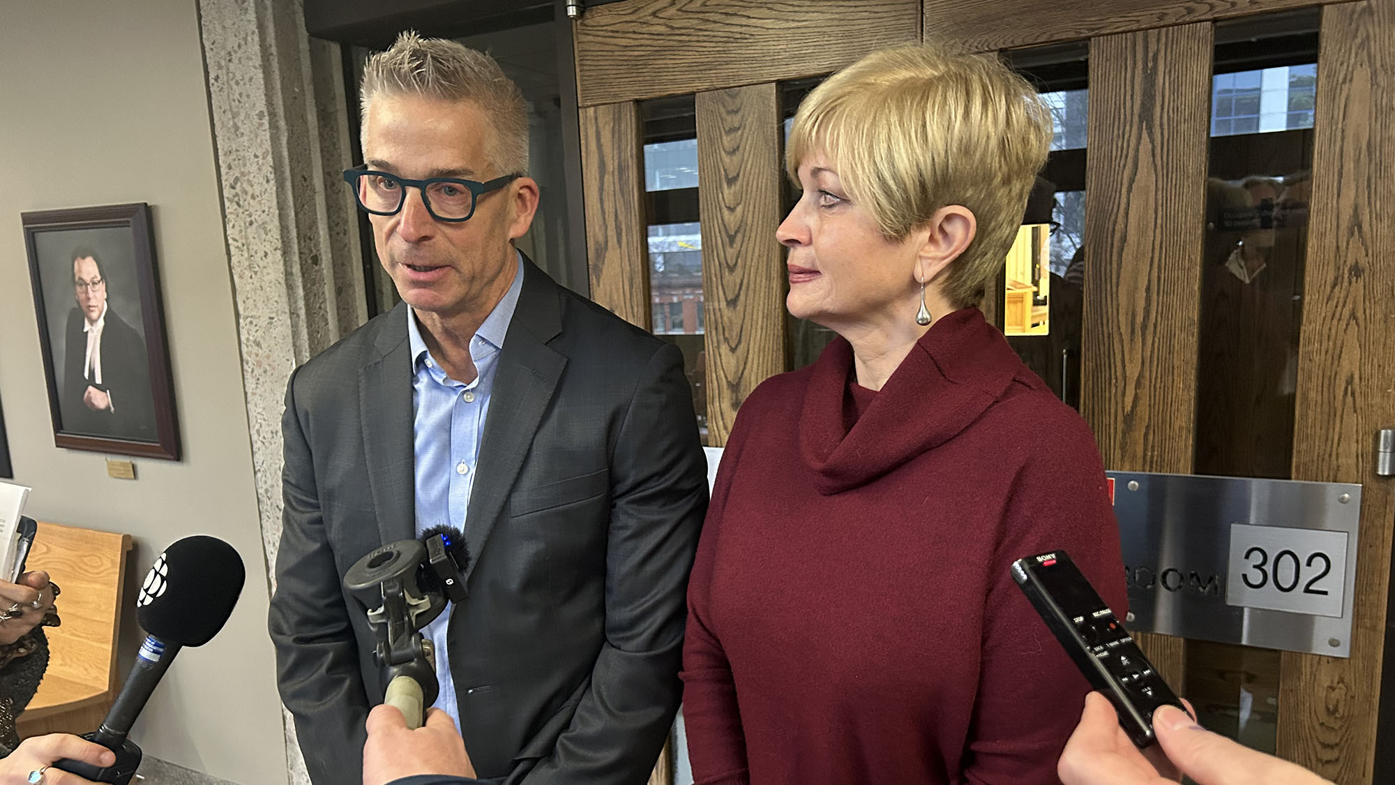 Ryan Sawyer's parents, Scott and Lee, speak to the media outside the courtroom following the verdict in the trial into their son's death.Justice James Chipman has found former Halifax Alehouse bouncer Alexander Levy guilty of manslaughter and criminal negligence in the death of 31-year-old Ryan Sawyer.