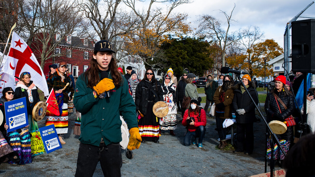Seventeen-year-old Donald Marshall (the son of Donald Marshall Jr., noted Mi’kmaw rights leader and activist) also spoke at the rally. He shared a memory of Tim Houston, who stopped at the Marshall family home while campaigning in 2021. Marshall says his mother made the future premier promise that he would never infringe on her son’s treaty rights.