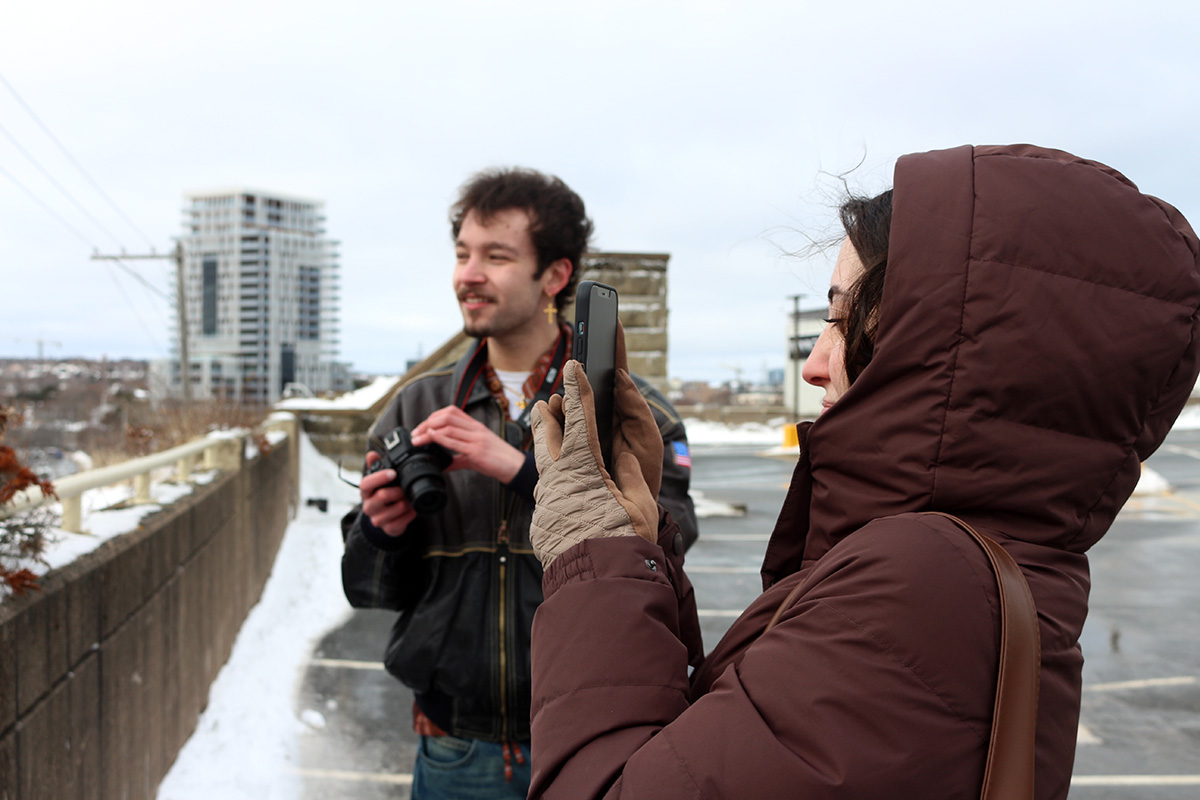 Jake Piper and Emily Conohan, right, conducting streeter style interviews outside the Halifax Shopping Centre on Feb. 2The reporters interviewed multiple sources, including the ex-boyfriend of Alexandria Wortman and the daughter of Dawn Nichols, who was killed by a pickup truck in February 2020. The reporters also sought out more information related to policies and advocacy that has been done to make streets safer for pedestrians, interviewing city councillors Shawn Cleary, Laura White and Sam Austin, and safe streets advocates Martyn Williams and Laurie Batten.