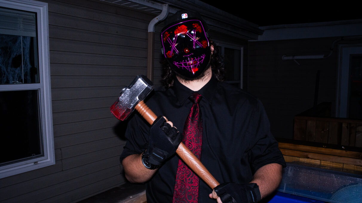 Halloween reveler Matteo Fernandes, dressed in a Purge: Election Year mask for a Halloween party on Windsor Street. A baseball fan, he felt confident players George Springer, Alejandro Kirk and Trey Yesavage would bring home a win in epic fashion.  Daniel Salas