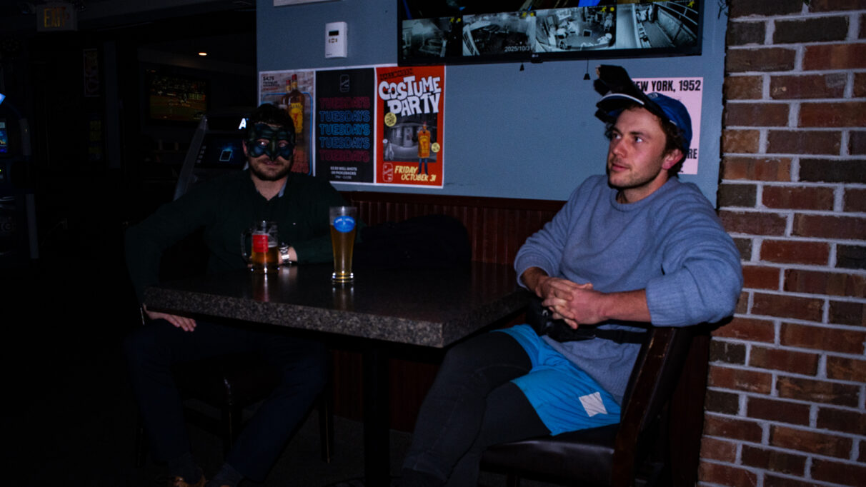 Tom Adams and Liam Grogan watch the end of the first inning of Game 6 at Freeman’s Little New York.  Isabel Duque